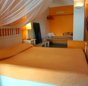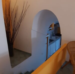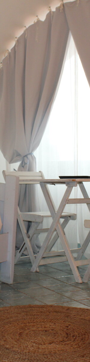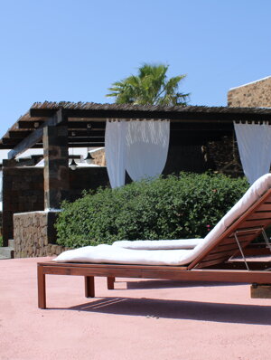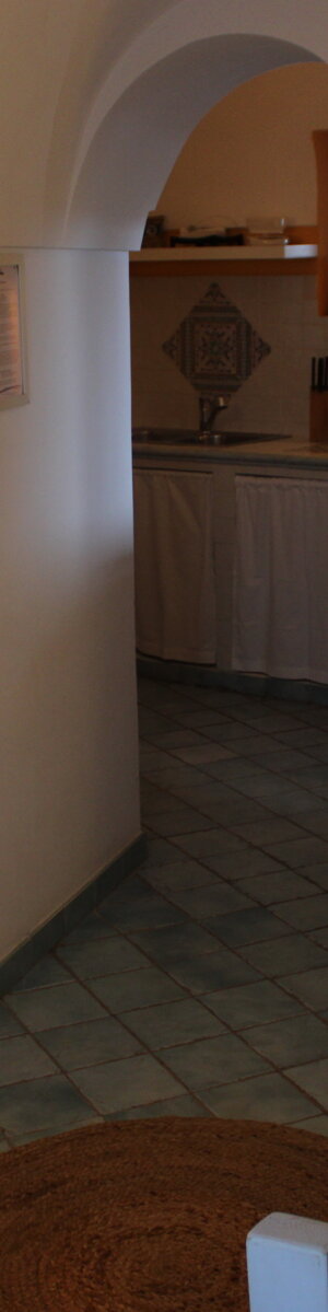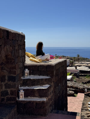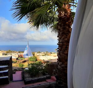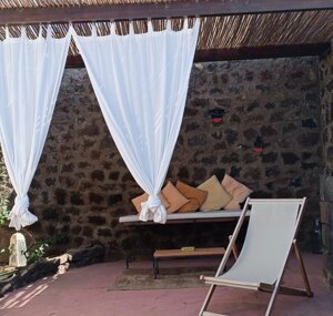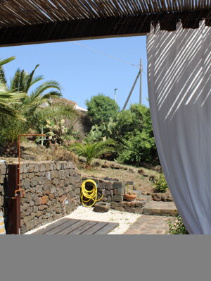 Il Dammuso può ospitare anche tre persone e si compone di una cucina attrezzata, un piccolo soggiorno, bagno e camera da letto che si trova su un livello superiore e si affaccia su un terrazzino ottimo nelle giornate ventose. È presente poi un altro grande terrazzo in parte ombreggiato da un cannizzato e in parte solarium, arredato da tavolo, sedie, sdraio e lettini in legno, fantastico per ammirare i tramonti o fare colazione con la vista del mare.